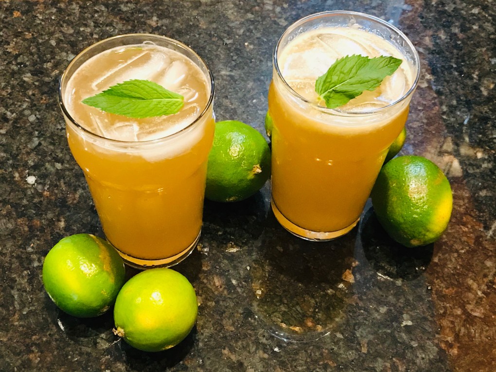 This 4 ingredient recipe is easy to make and deeply-satisfying on a hot summer day. You will need fresh mint (I used peppermint), limes, black tea, and of course…ice.